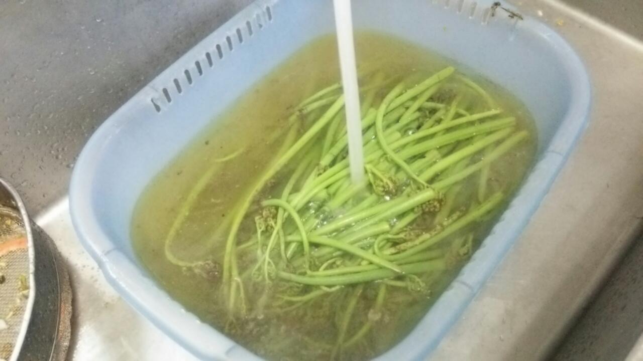 太々のワラビ、アク抜き中。