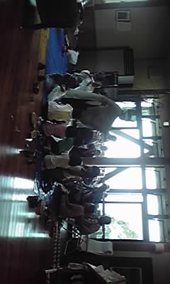 お天気が怪しいので、室内でお神楽、そして子供たちお待ちかねの餅撒きならぬお菓子撒き(笑)