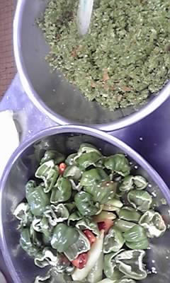 これを細かくして、フキ味噌を作る感じで、ぼたんこしょう味噌を作りました。