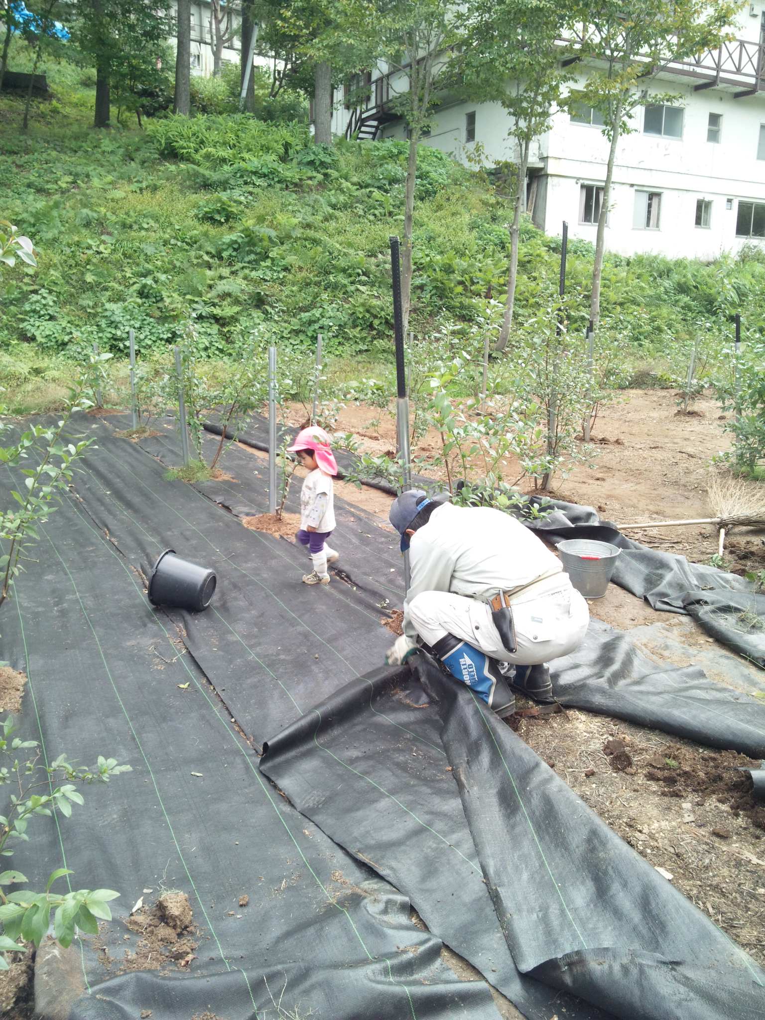 ちょっと高いから畑全部に敷くのはたくさん必要で高くつくし、敷くのもはがすのも大変だけど、草刈りしなくて良いのは楽だし、来年も頑張ってはるぞ~〓〓