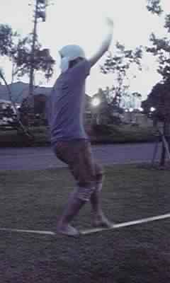 ピンと張ったロープ(幅15センチくらいかな?)を