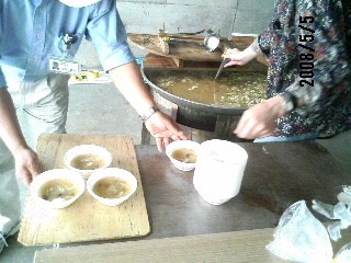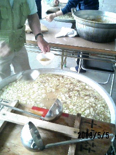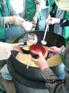 タケノコ汁を作る炊き出し班は大変です。
