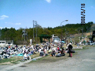 ゲレンデの芝生の上でお弁当広げて、