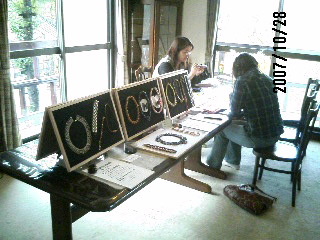 あたしも体験で、ブレスレットにもなる瓶の首飾りを