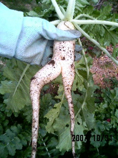 なんだか悩ましげな大根まで収穫しちゃいました(笑)
