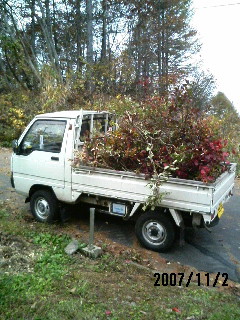 そして剪定した枝を軽トラの荷台に。