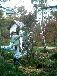 ブルベリの雪囲いを始めました。