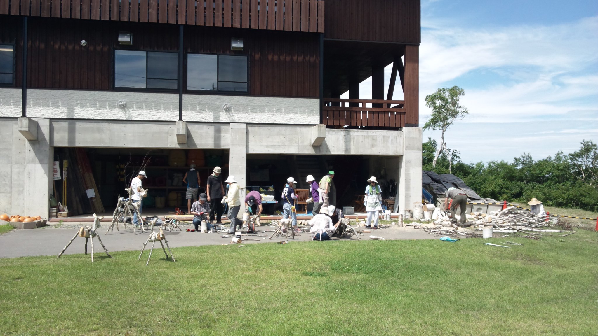 高原内いろんな所でお客様をお迎えしてくれる、白樺のシカを作っています。