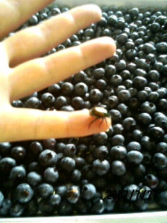 摘んで来たブルーベリーの籠の中に