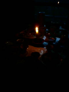 しかしロウソクの灯りでお夕飯。