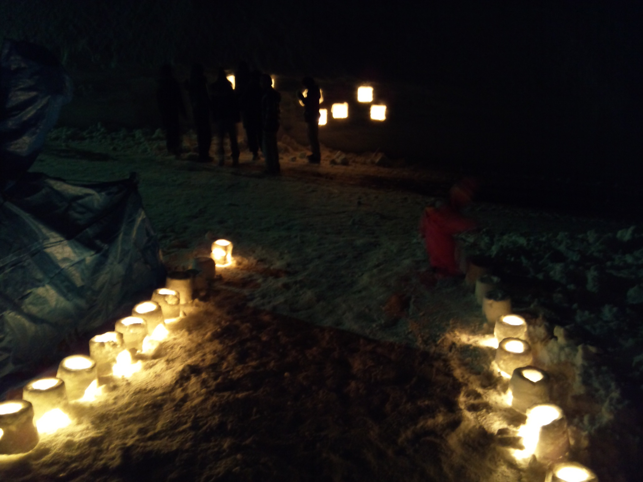 夜にふれあいの時間というのがあり、よく晴れていたのでスノーキャンドル作りをしました。