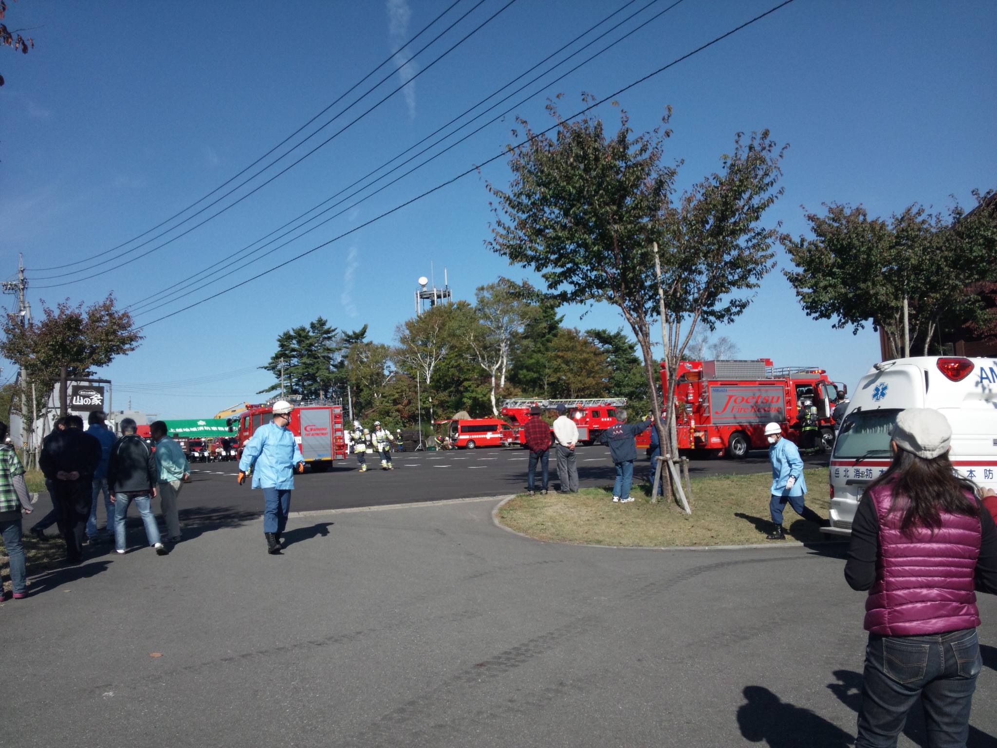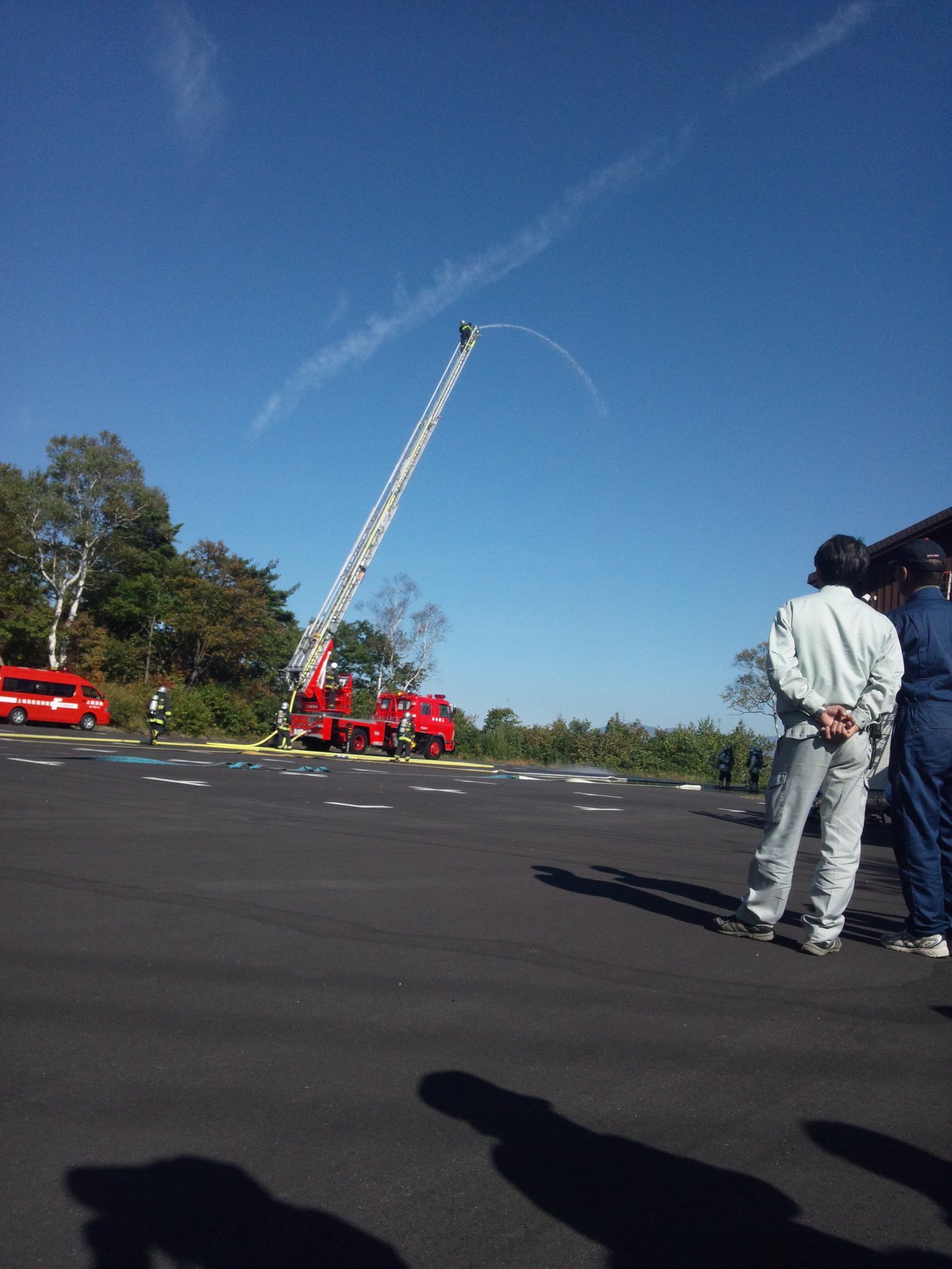 今日は斑尾高原内で全体で参加する消防訓練です。